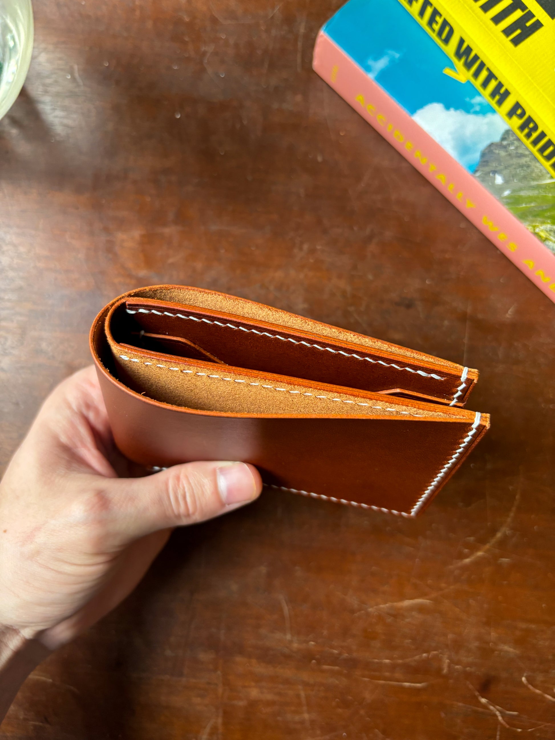 This wallet uses chestnut Buttero by Conceria Walpier.