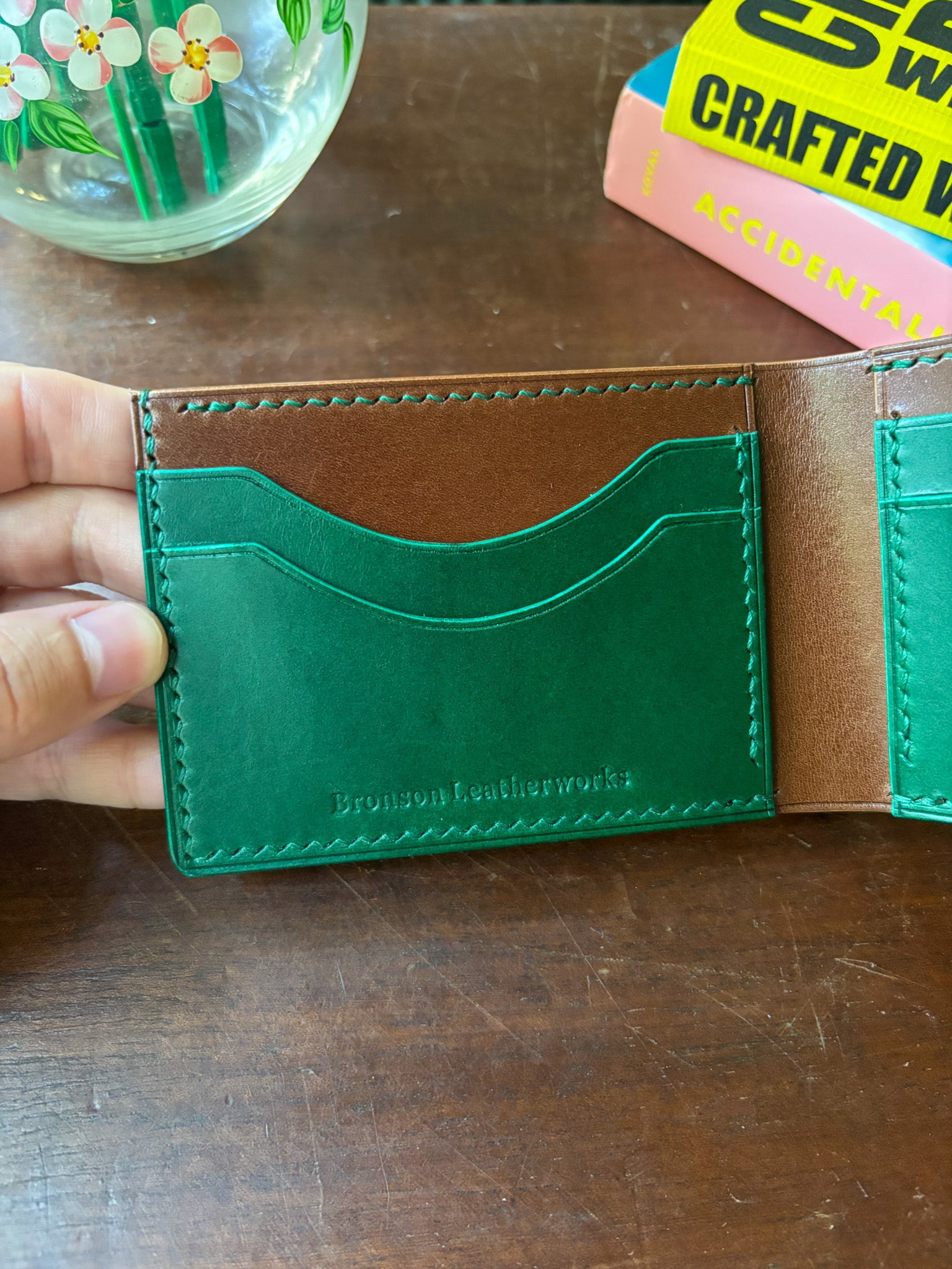 This wallet uses Green Buttero by Conceria Walpier and Walnut Gaucho Oil by La Bretagna