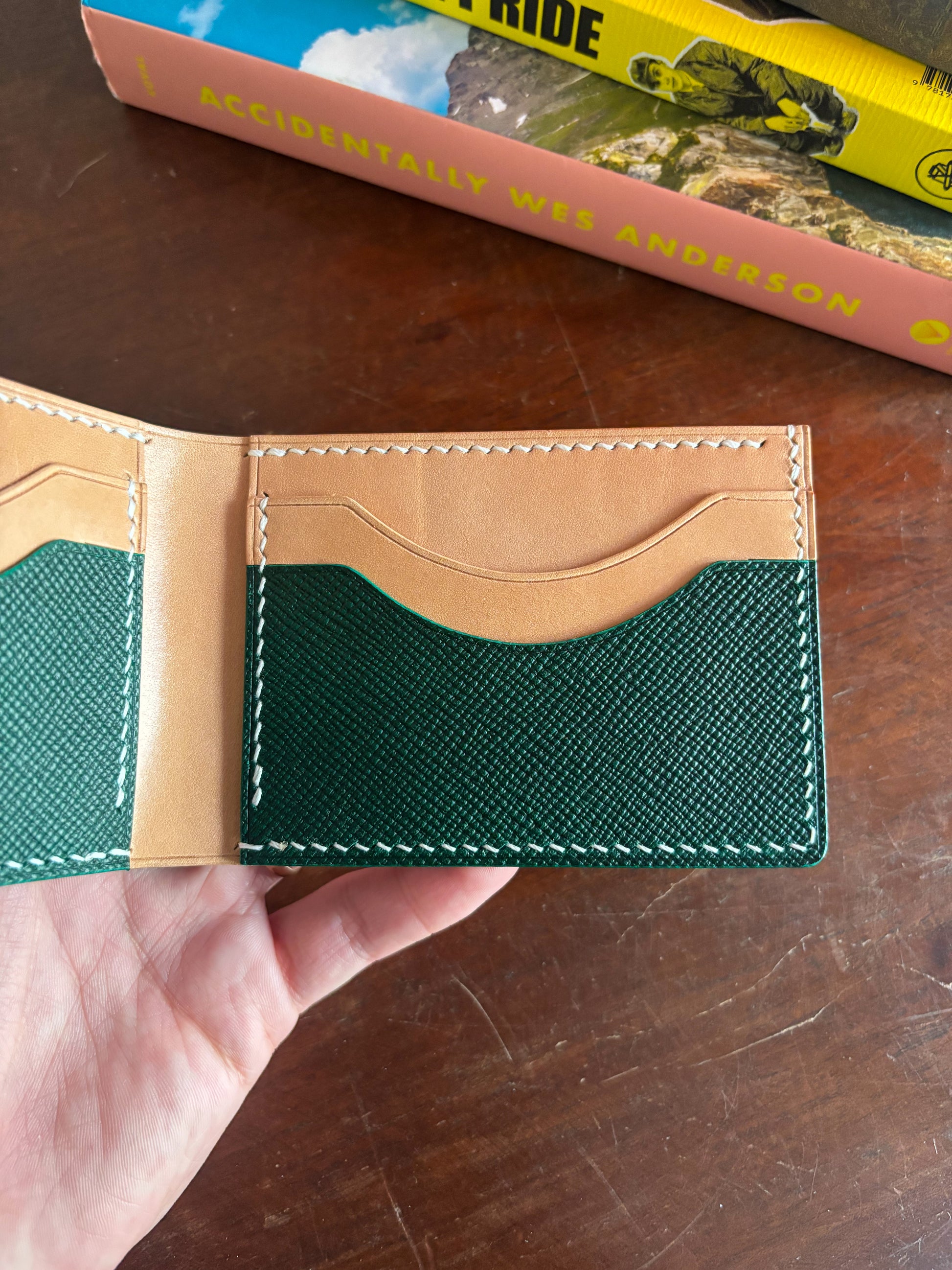 Natural and Saffiano Green Billfold