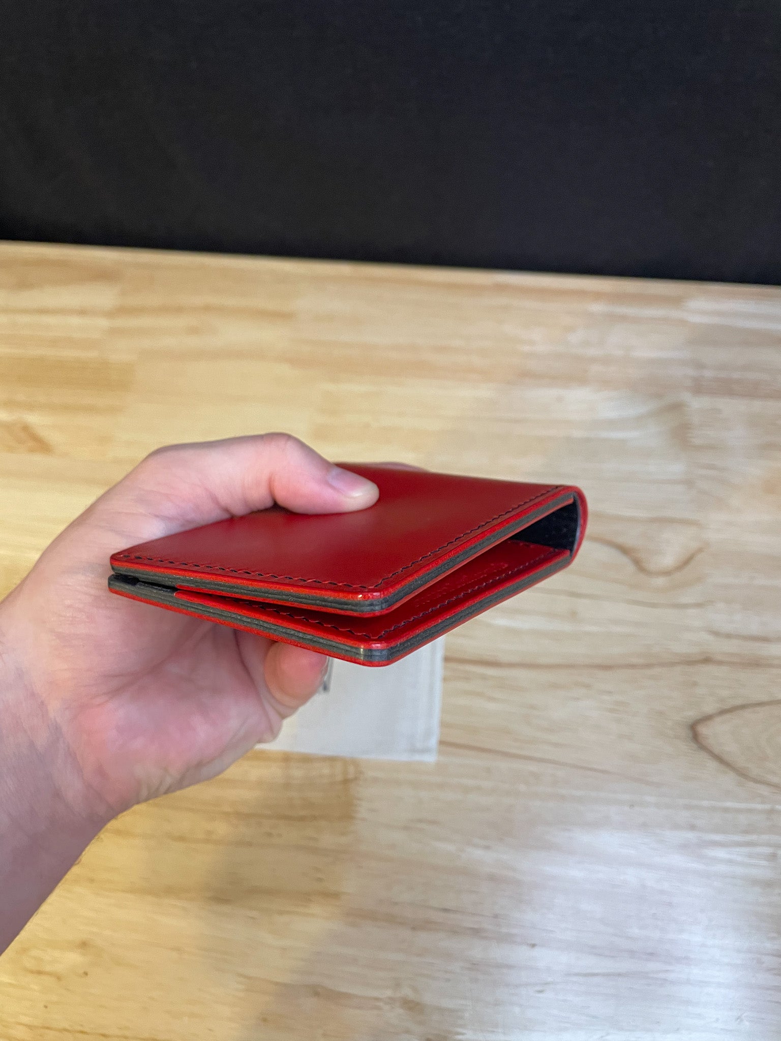 This wallet uses red Buttero and black Dollaro by Conceria Walpier.