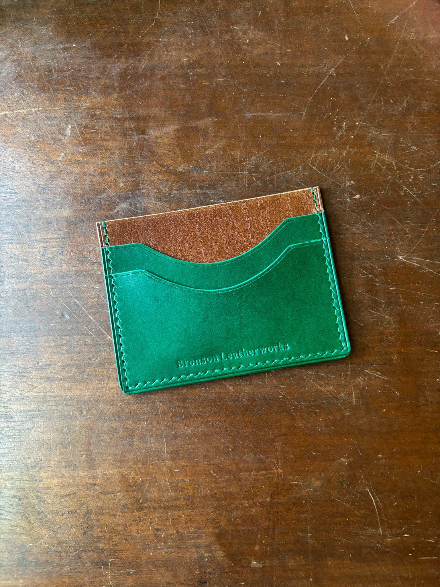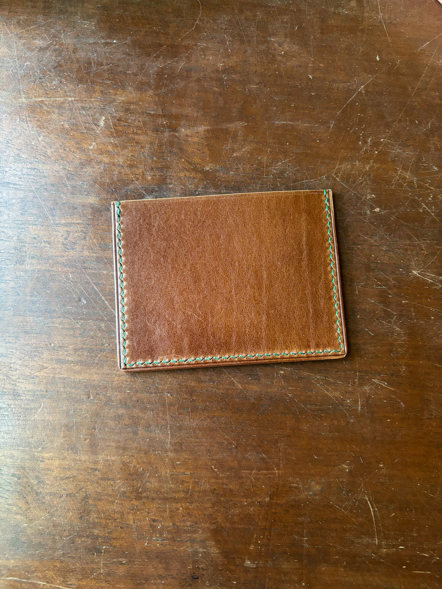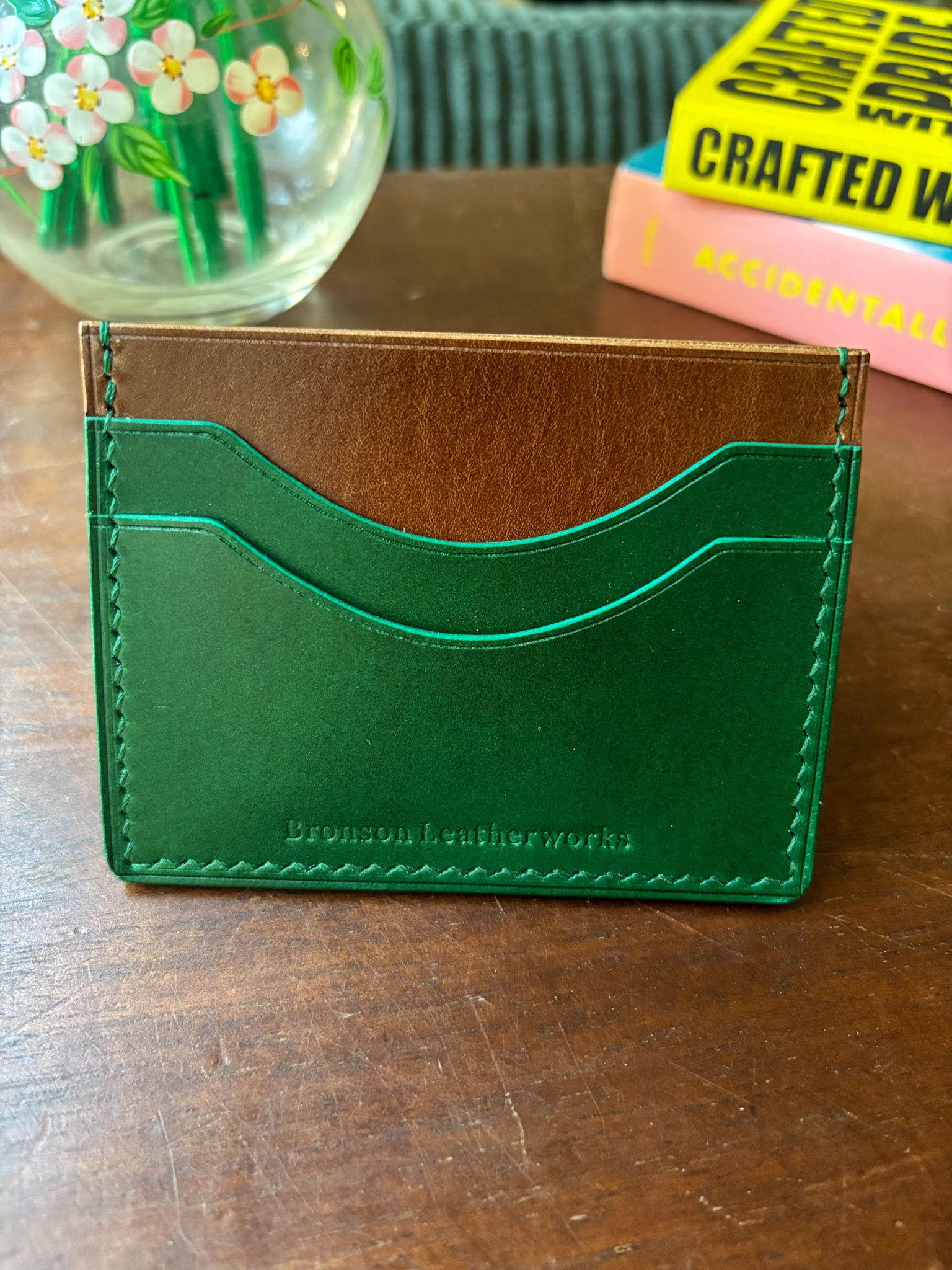 This cardholder is made from Green Buttero by Walpier and Walnut Gaocho Oil by La Bretagna