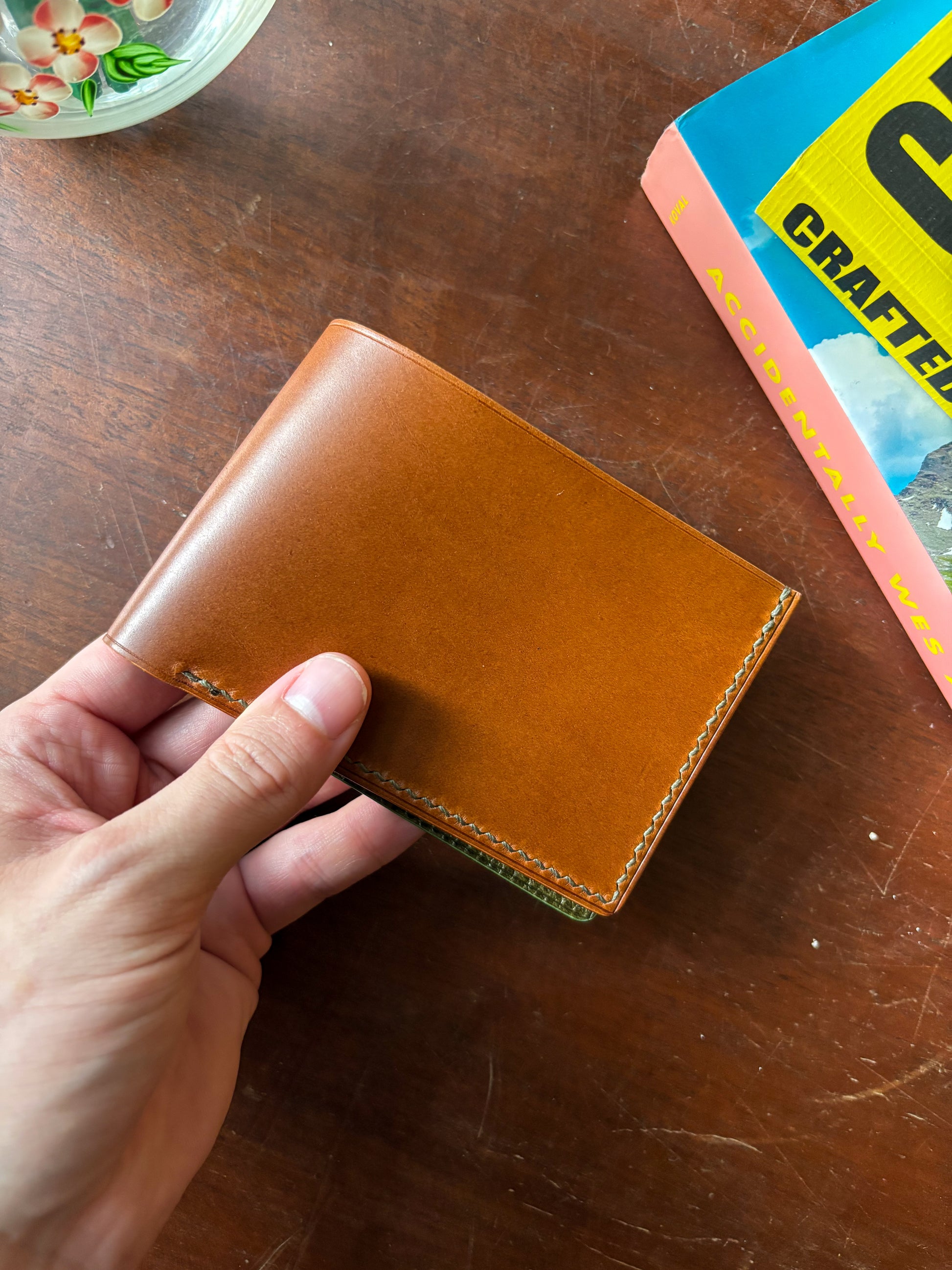 This wallet uses Walnut Buttero and Olive Dollaro by Conceria Walpier.